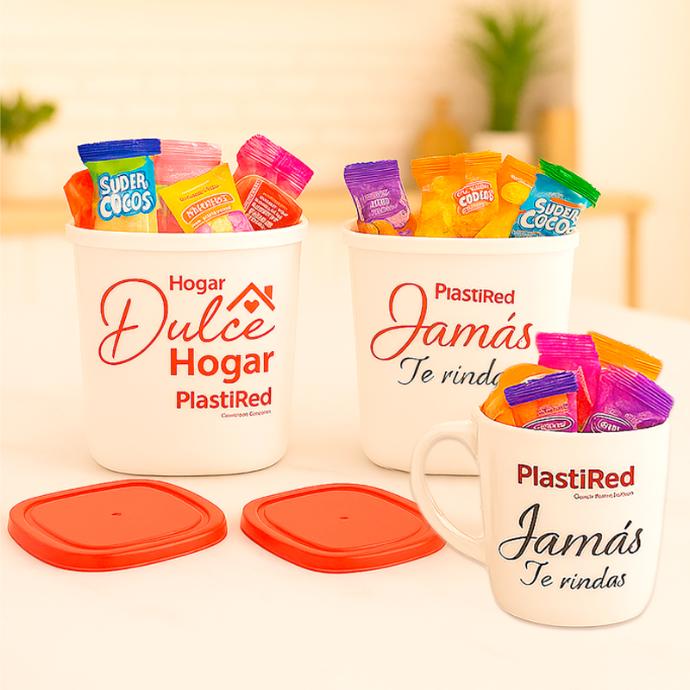 • Recipientes resistentes que garantizan higiene y practicidad en el uso diario.